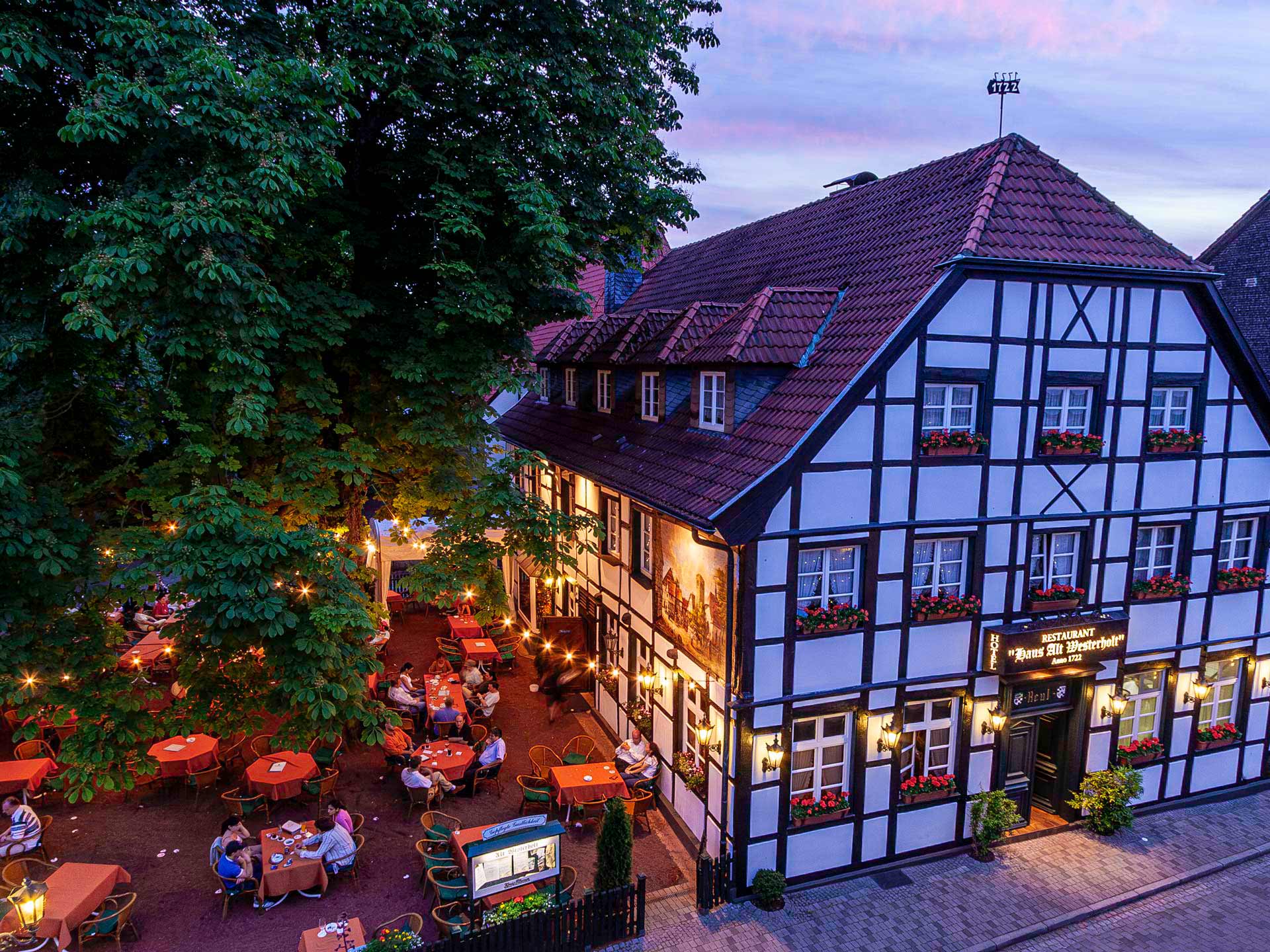 Bei uns trifft man sich zum Essen oder auf ein gemütliches „Blondes”. Das idyllische alte Dorf von Westerholt beherbergt ein historisches Fachwerkhaus aus dem Jahre 1722 unser Restaurant „Haus Alt Westerholt”.